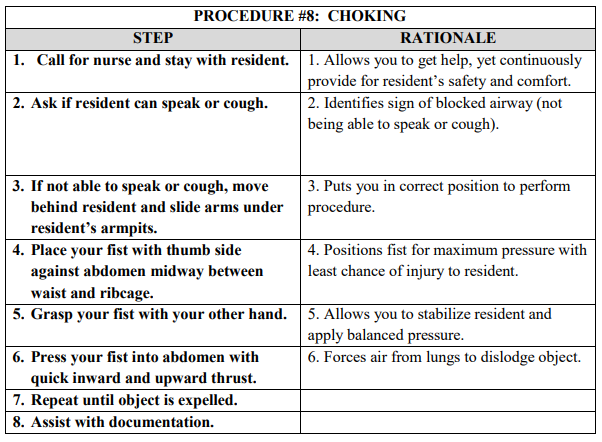 Appendix A: Resident Care Procedures Appendix A: Procedure 08: Choking