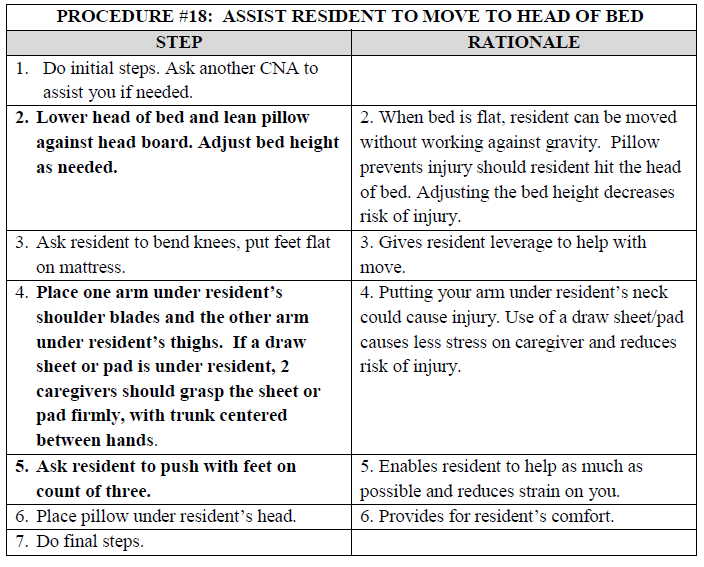 Appendix A: Procedure 18: Assist Resident to Move to Head of Bed