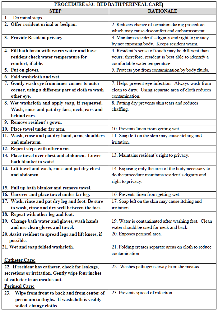 PROCEDURE #33: BED BATH/PERINEAL CARE