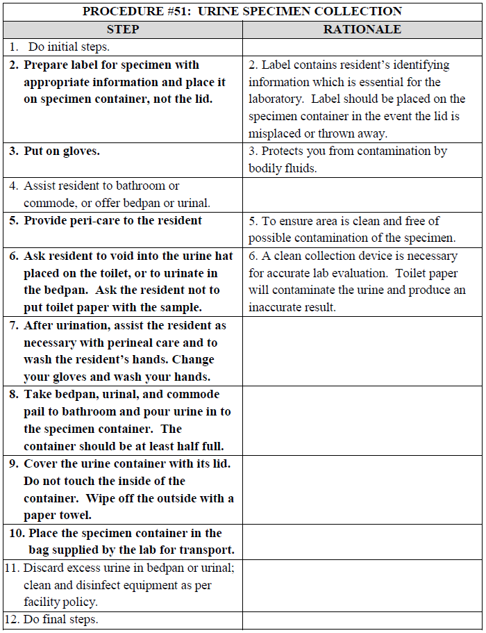 PROCEDURE #51: URINE SPECIMEN COLLECTION