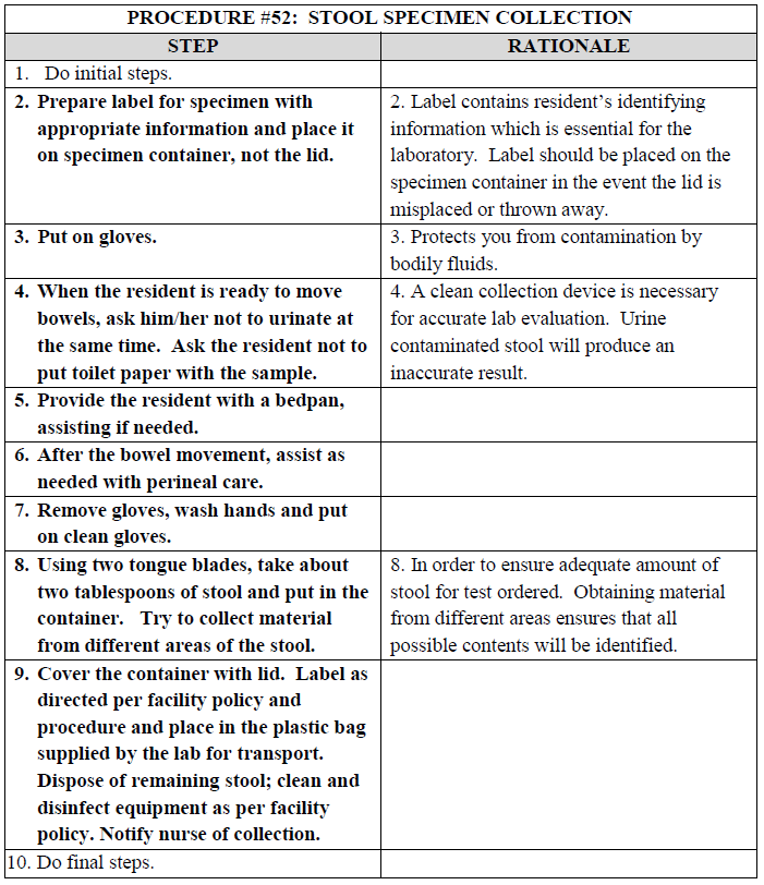 PROCEDURE #52: STOOL SPECIMEN COLLECTION