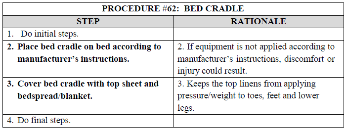 PROCEDURE #62: BED CRADLE